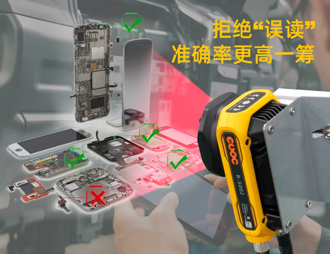 zoty中欧R-5000系列智能读码器支持ROI顺序输出模式,可以快速定位误读产品确认问题。同时搭载快速响应的影像传感器,确保每一个图像质量精细优异,实现高精准读取。