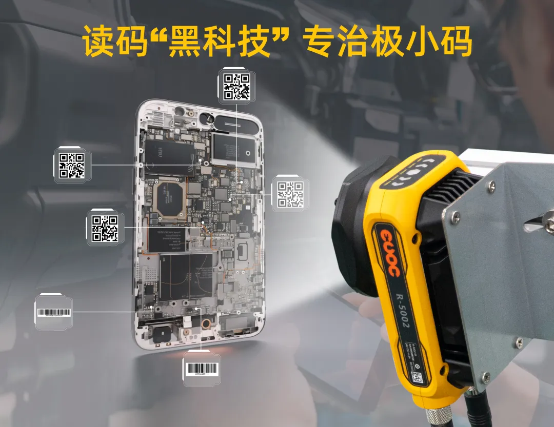 zoty中欧R-5000系列智能读码器,结合超分辨率图像重构技术的Ultra 算法,专为极小码读取优化,可稳定从远距离读取分辨率较低的条码。